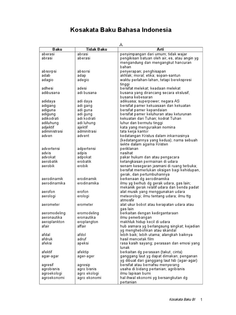 Contoh kosa kata baku Kosakata Baku Bi Dockosakata Baku Bi