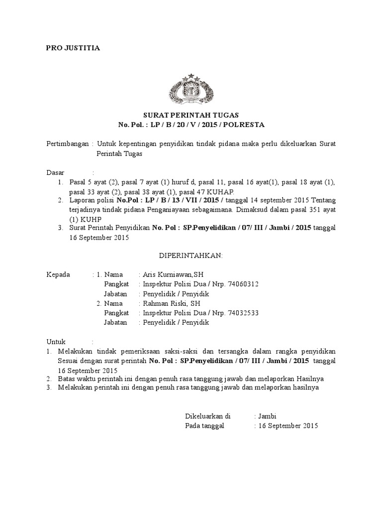 Contoh surat perintah tugas pdf Contoh Surat Perintah Tugas Keamanan